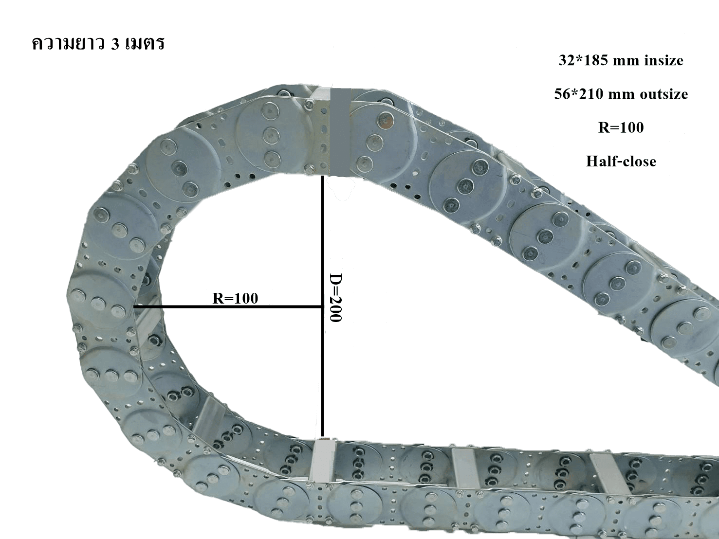 กระดูกงูแบบสแตนเลส 304 (Stainless 304) ไม่เป็นสนิม 32×185 mm half close Outside 3เมตร