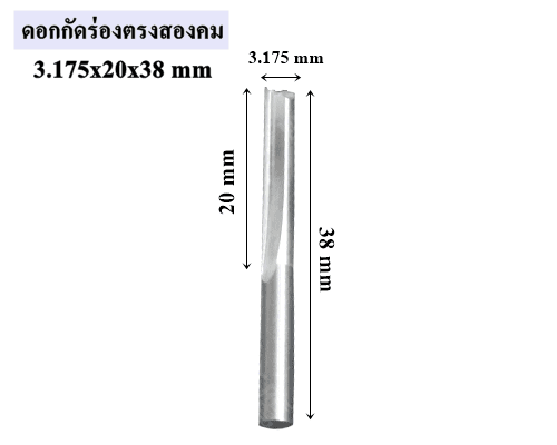 ดอกกัดร่องตรงสองคม 3.175x20x38 mm