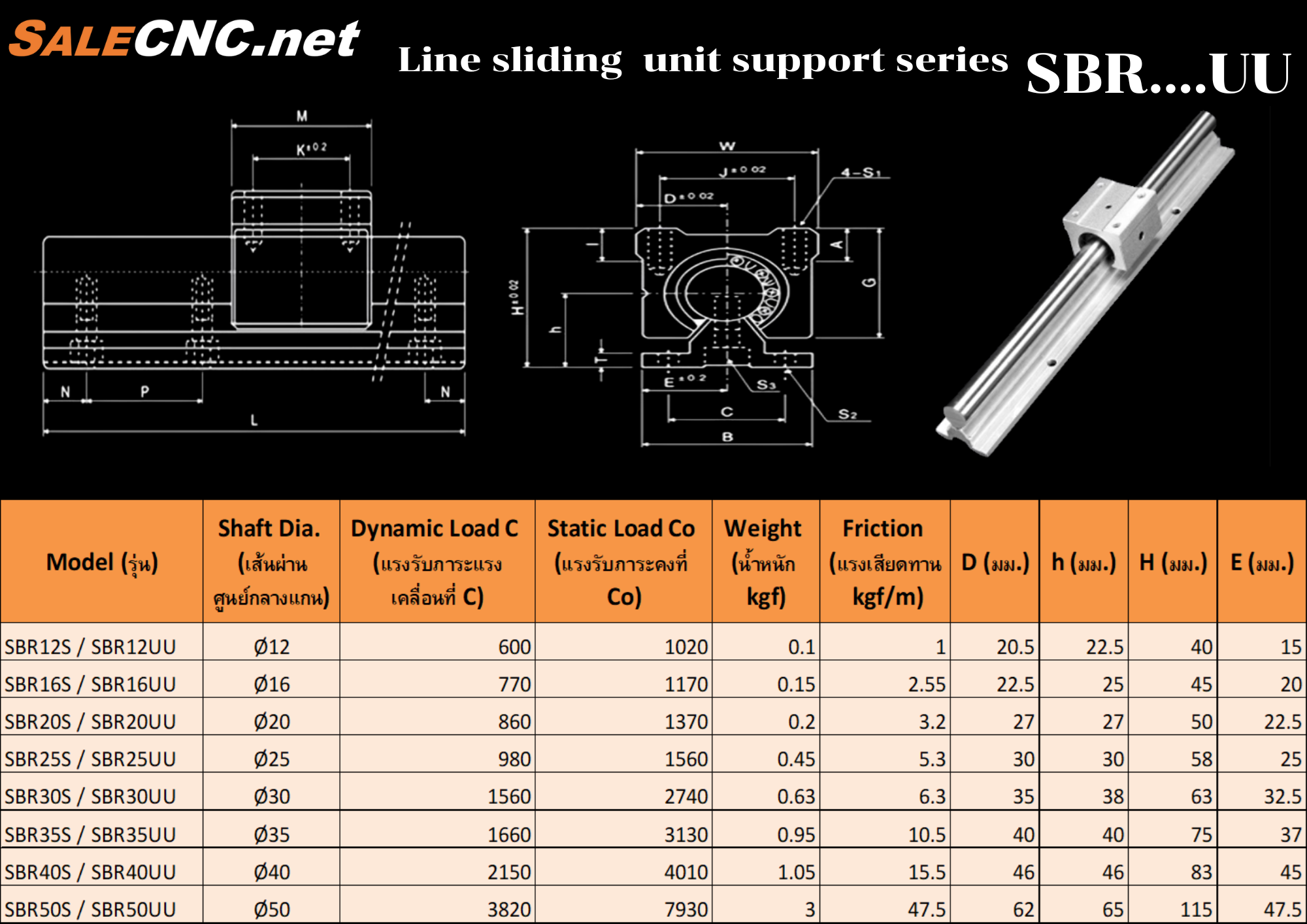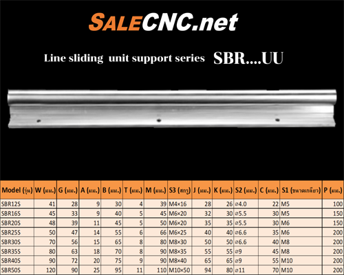 Specification  :  ข้อมูลจำกัดเฉพาะ / สเปคของรางสไลด์ (Linear Rail SBR)