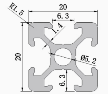 อลูมิเนียมโปรไฟล์/Aluminum profile 20x20mm หนา1.4mm