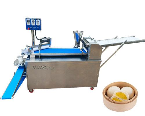 3. มาถึงจุดขึ้นรูปทรงกระบอกระบบจะขึ้นรูปลงในพวยก๋วยเตี๋ยว และตัดแป้งเป็นซาลาเปา 1 ลูก ในรูปแบบทรงกลมหรือแบบมีจีบ 12 จีบ