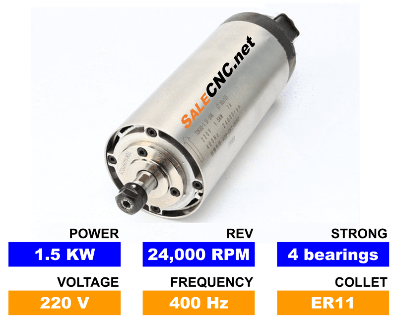 High Speed Spindle 1.5KW 24,000rpm Air,strong 4 bearings, ER11